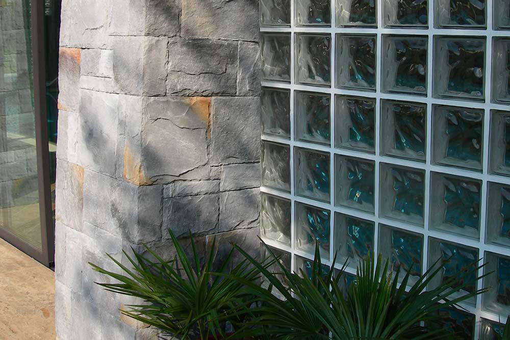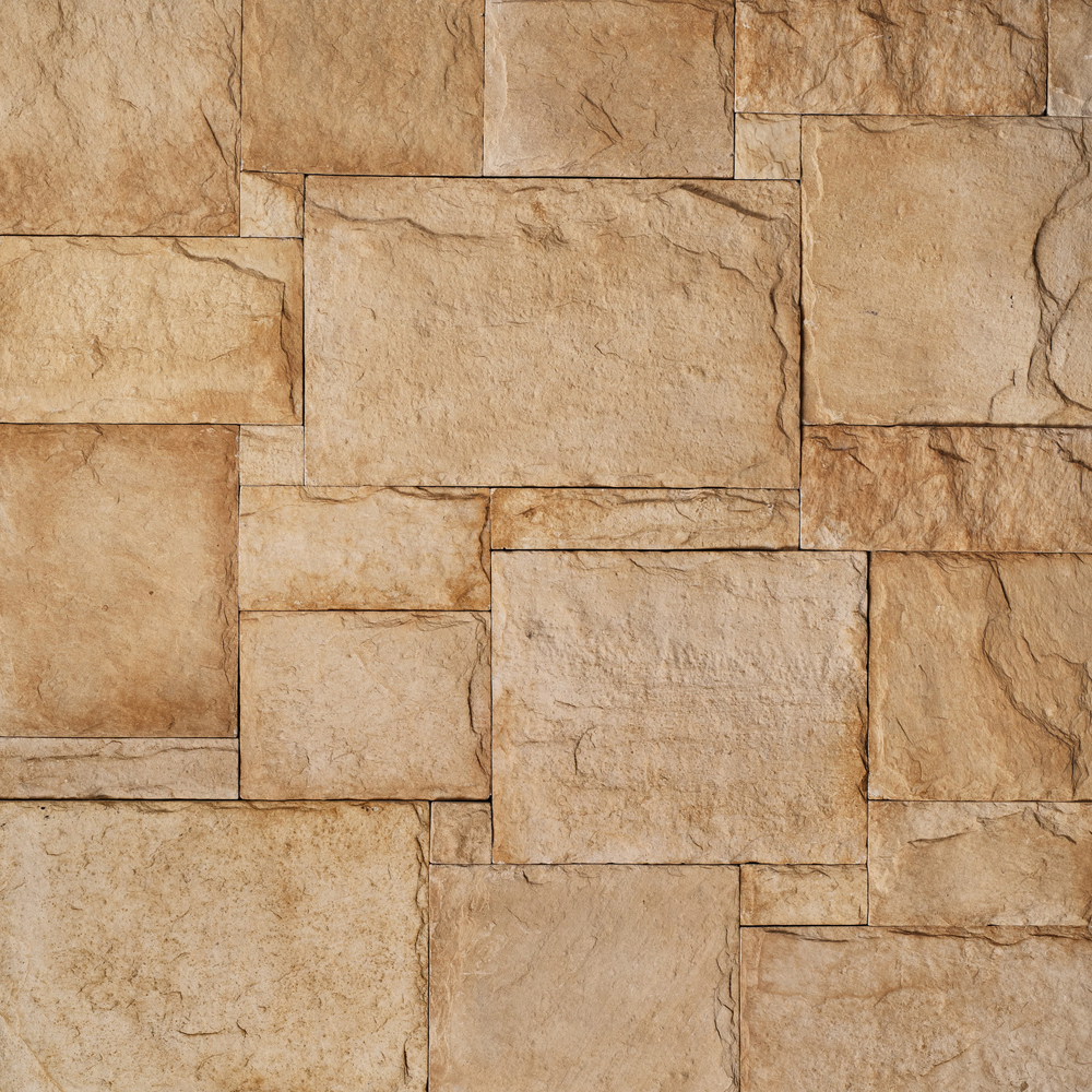Pietra di forma rettangolare con trama moderata , essa è disponibile in champagne e tinta grigia " Alamo " di Mathios Stone adorna alcuni dei progetti più famosi al mondo.